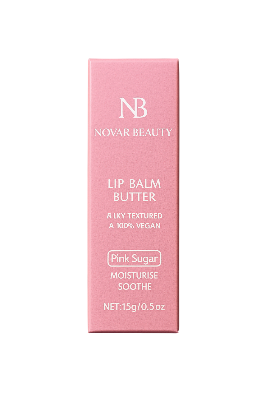 Pamper your lips with the Novar Beauty Pink Sugar Butter Lip Balm, a nourishing vegan formula created to moisturise, soothe, and protect. This soft, buttery balm glides on effortlessly, delivering deep hydration that lasts throughout the day while leaving a subtle pink tint for a naturally enhanced look.